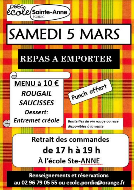Repas créole à emporter : samedi 5 mars